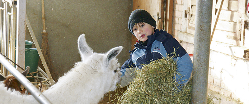 Bei den Arbeiten im Stall wie Füttern und Misten, beim Heuen und anderen Aktivitäten rund ums Tier können die Kinder Erlebnisse machen, die spannend, ungewohnt und faszinierend sind.